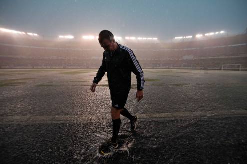 Lluvia poderosa en Barranquilla, el partido entre Colombia y Ecuador debió cambiar su horario por el temporal. FOTO DIARIO EL UNIVERSO