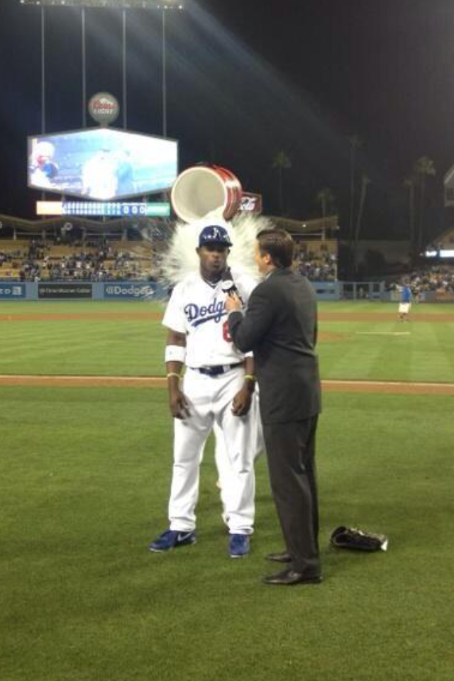 Bienvenido a las grandes ligas Yasiel Puig, primer baño para la estrella cubana de los Dodgers. |