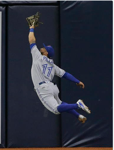 | Kevin Pillar y una de las primeras grandes jugadas defensivas del año. |