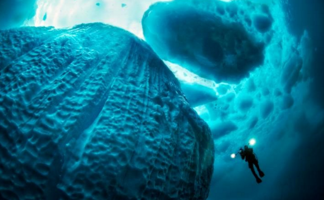 | El fotógrafo Tobias Friedrich se sumerge en Groenlandia para captar todo lo que tiene un iceberg debajo del mar, lo que no se ve en superficie. |