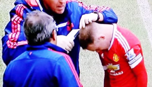 | Pasa la grapadora…en la misma cancha, le cerraron un corte en la cabeza a Rooney. |