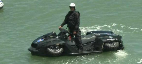 Fin de un día de trabajo para el equipo de rescate de un torneo de surf, es tiempo de regresar a la orilla. FOTO Tim McKenna |