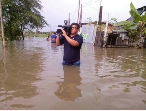 William Pincay, camarógrafo de TC Television grabando sectores inundados en Milagro |