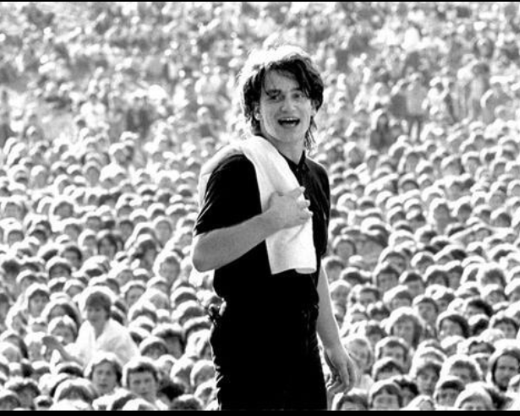 | 1980…un joven Bono cantaba para un publico irlandés…su discurso aquel día…critica poderosa contra el Reino Unido. |