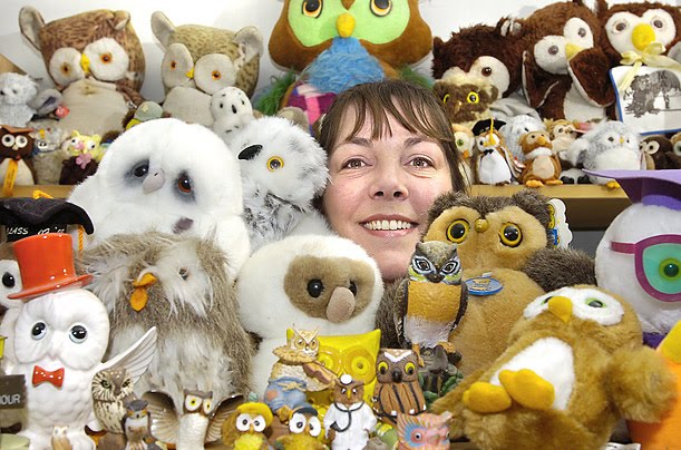 4. Pam Barker es reconocida por Guinness como la dueña de la colección mas grande de peluches de búhos, en su casa en Maine-EEUU, tiene mas de 18.000 búhos.