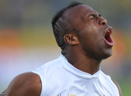 | AFP A todo pulmon, Christian Benitez celebra el segundo gol de Ecuador frente a Perú. |