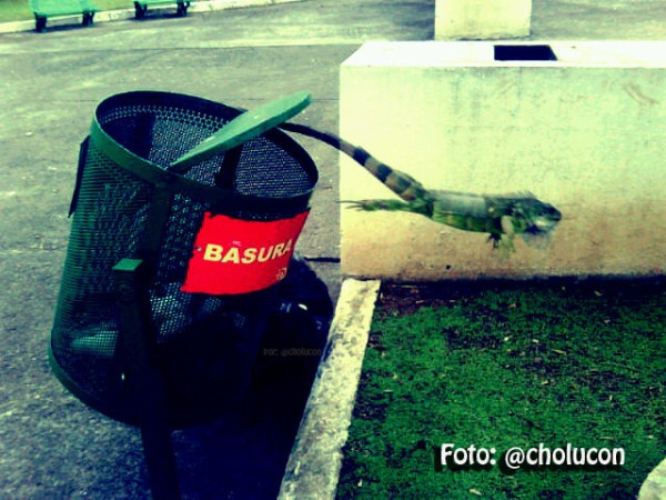 | No es una iguana voladora, es la foto que capto Cholucon en el parque de Vernaza norte y desde donde denuncio que las iguanas se mueren de hambre y comen basura. |
