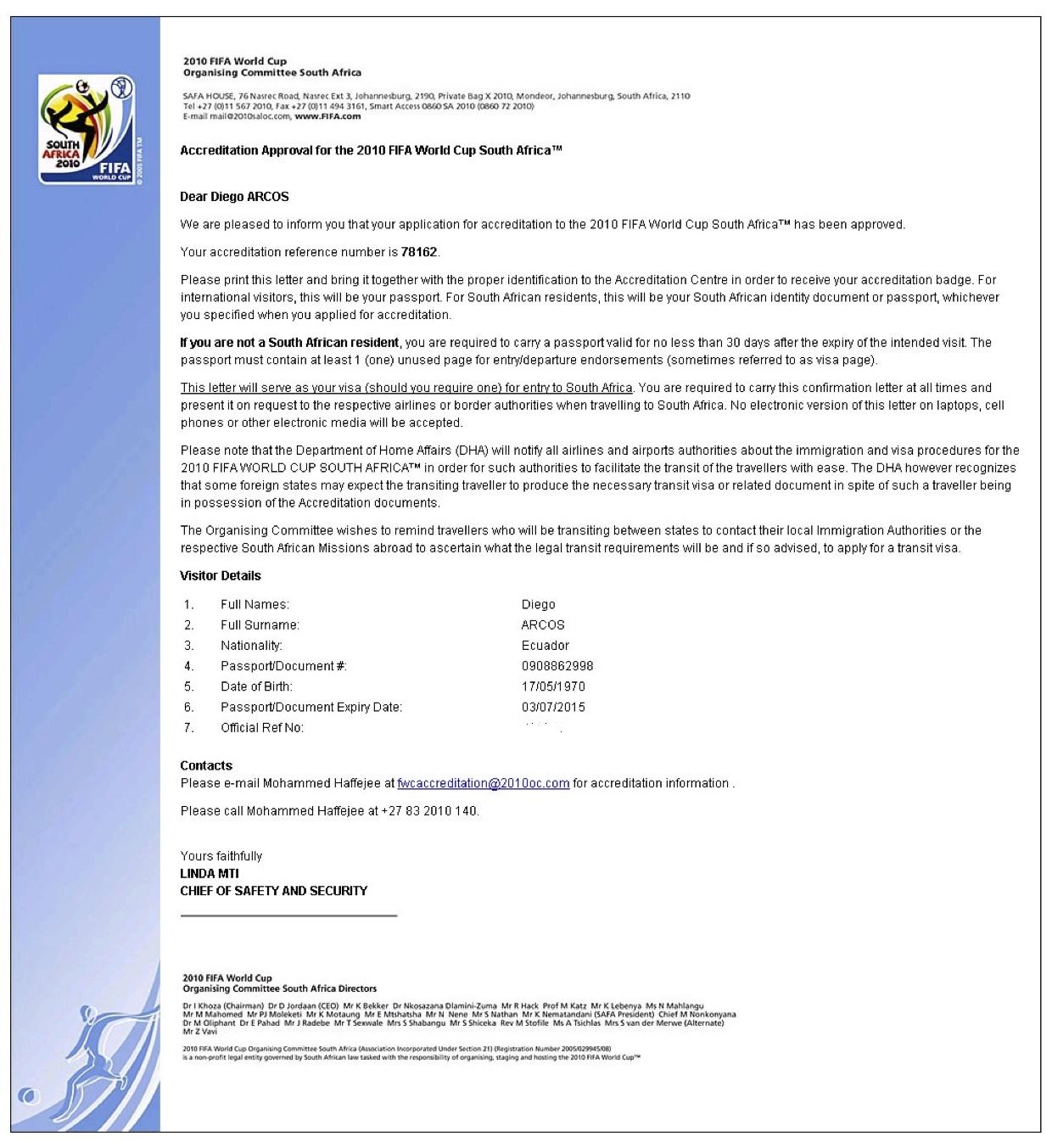 Después de llenar un formulario de cerca de 5 paginas y enviarlo, se inicia el proceso de investigación del aplicante, lo mas coherente, se debe determinar quien es este individuo que alega ser periodista y aspira trabajar en el próximo mundial.