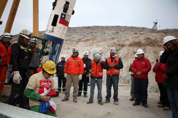 El mismo Gomez(abajo) reza una vez llegado a la superficie.